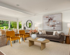 Living room and a wall of windows along the back of the home flood this home with sunshine and light.